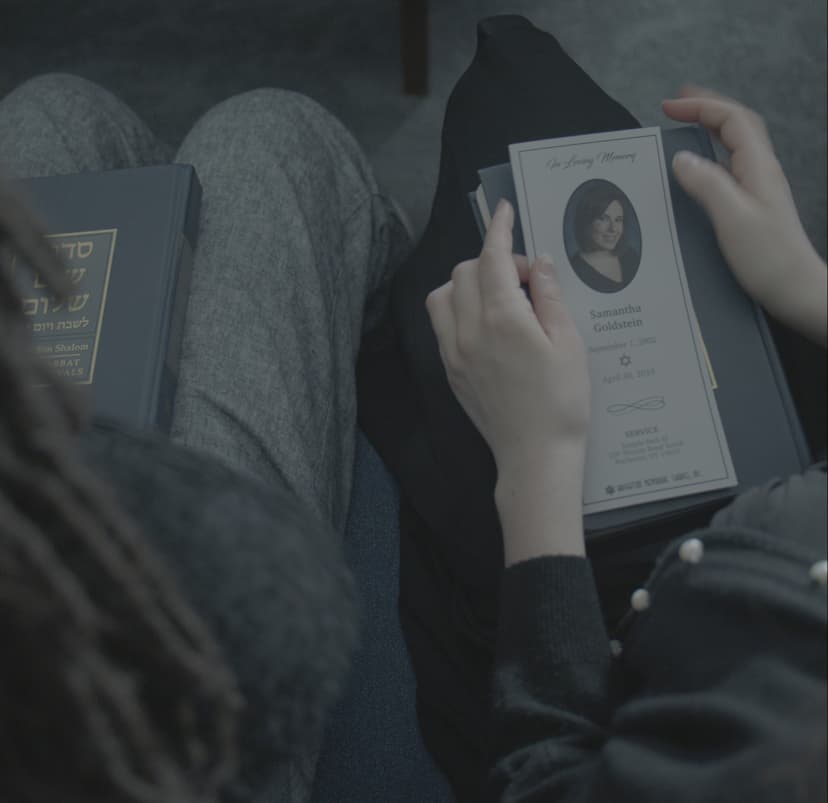 An anxious teen girl is manipulated into a surprising romantic encounter with her best friend during the memorial service of their deceased Hebrew school classmate.